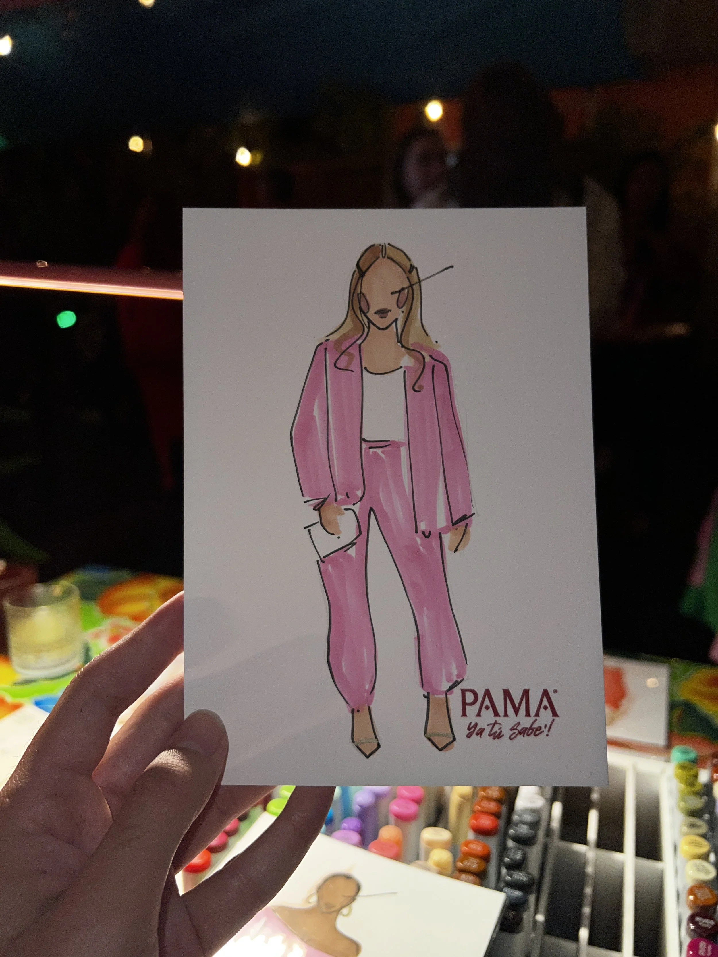 5-7 minute live fashion sketches for a private event with Pama Liqueur and Guelaguetza located in Los Angeles, CA.